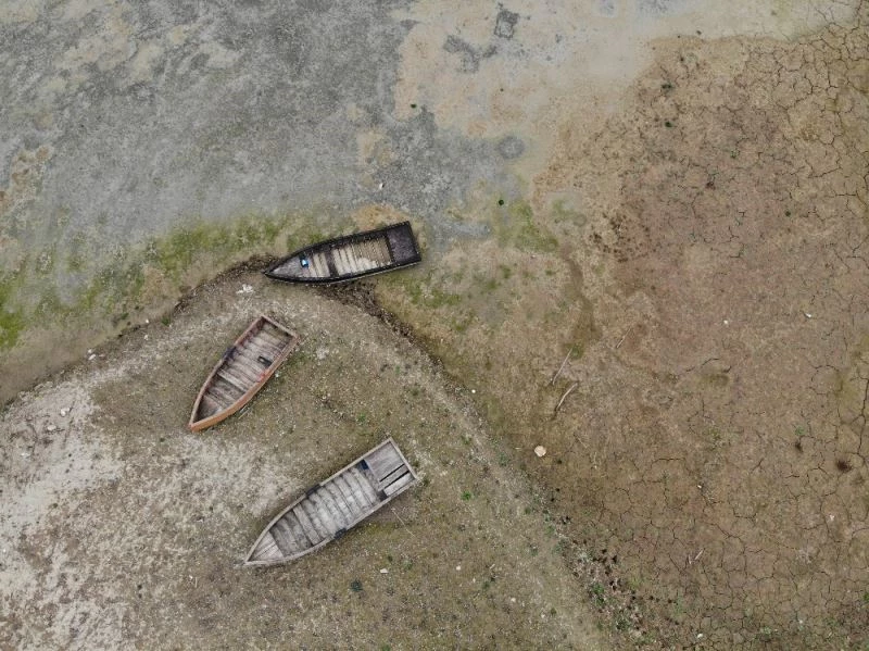 Düzce’nin Yığıla ilçesinde yer alan Hasanlar Barajı, İstanbul’a su sağlayan önemli kaynaklar arasında yer alıyor. 1 milyon 651 bin metreküp su kapasitesine sahip olan baraj, son yılların en kurak dönemini yaşıyor. Su seviyesinin yüzde 15’lere kadar gerilediği baraj gölünde kayıklar karaya oturdu, kuraklık sebebiyle toprak çatladı. İneklerin otlak alanı haline gelen baraj gölündeki su seviyesi giderek azalıyor. Barajda azalan su seviyesi, kayıkların karaya oturması ve suyun çekildiği alanlarda ineklerin otlaması havadan da görüntülendi.