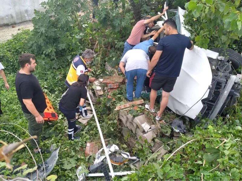 İstinat duvarına çarpan otomobil çalılıklara uçtu: 1 yaralı