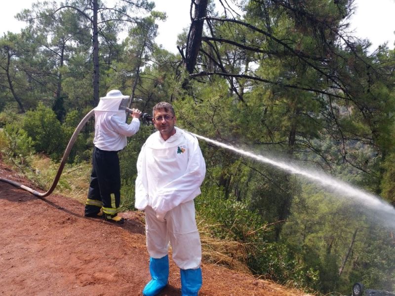 Bu arada olay Tarım İlçe Müdürlüğü ve İtfaiye ekiplerine de bildirilerek yardım istendi. Bölgeye gelen ekipler kaza nedeniyle önce olay yerine yakın bölgelerdeki trafik levhalarına arı saldırısına karşı uyarıcı levhalar astı. Ardından da bölgeye giden itfaiye ekipleri kolonilerin yayıldığı ormanlık alanlara su sıkarak arıların kızgınlıklarını gidermeye çalıştı. Çalışmalara ekibi ile bizzat kendisi de katılan Marmaris Tarım İlçe Müdürü Necmettin Kaya da arıların saldırısı sonucu yaralanarak hastaneye kaldırıldı. Hem sürücü ve aynı zamanda arıcı olan Ahmet Eren’in hem de kazadan sonra kurtarma çalışması yaptığı sırada arıların saldırısı sonucu yaralan İlçe Tarım Müdürü Kaya’nın durumunun iyi olduğu bildirildi.