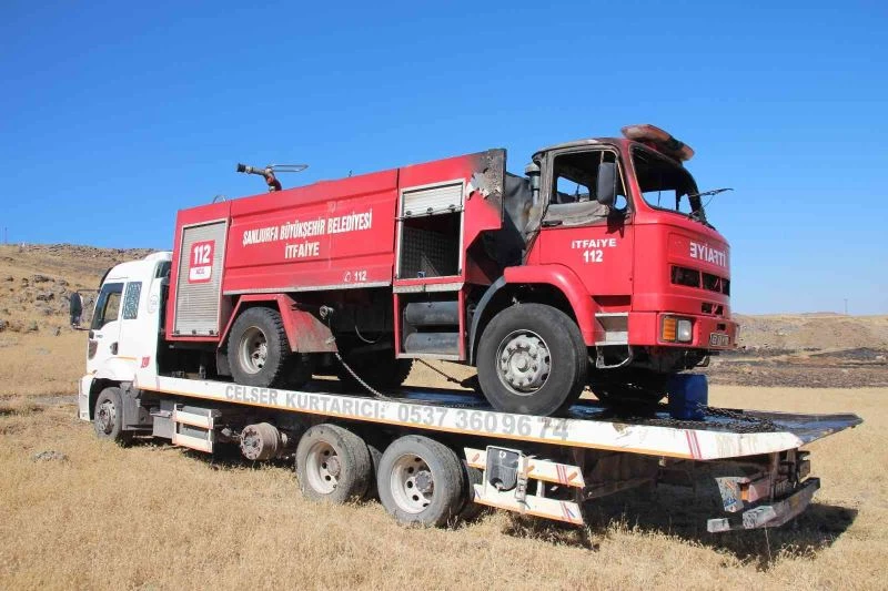 İtfaiye erinin üzerinden düştüğü araç alevlere teslim oldu