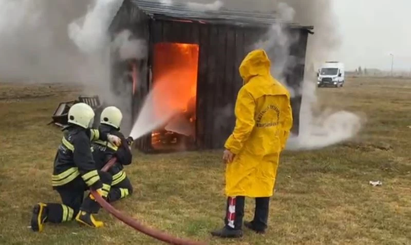 Erzincan’da Türkiye Afet Müdahale Planı (TAMP) çerçevesinde ilin geniş katılımlı tatbikatı öncesi yangın söndürme provası yapıldı.
