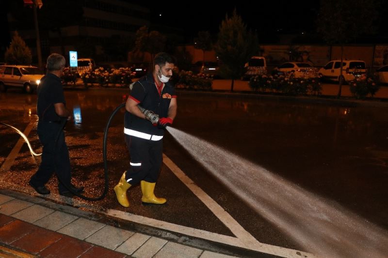 Ramazan Bayramı’nın yaklaşmasından dolayı her yıl olduğu gibi bayram öncesi ilçe merkezinde temizlik çalışmaları yapılıyor. Bu yılda Korona virüs dönemine denk gelmesinden dolayı daha titiz ve dikkatli bir şekilde yıkayan İtfaiye ekipleri şehri pırıl pırıl etmek için uğraşıyorlar.