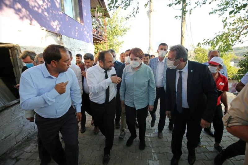 Akşener, Aladağ ilçesindeki orman yangınında evi zarar gören vatandaşları ziyaret etti.