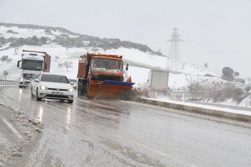Manisa’nın Kula ilçesinde öğle saatlerinde aniden bastıran kar yağışı hayatı olumsuz etkiledi. Kara yolları ekipleri, İzmir-Ankara D300 Karayolunda herhangi bir aksama yaşanmaması içi kar küreme ve tuzlama çalışması yaptı.
