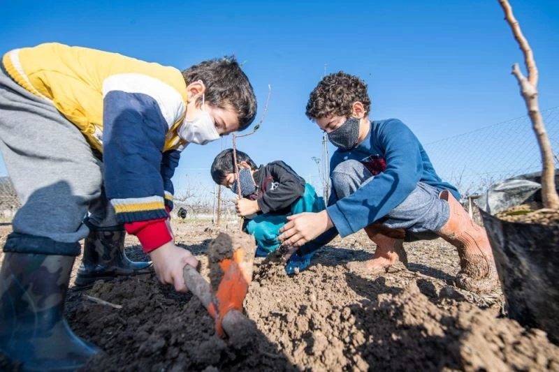 Babadan bağcı, zeytinci olduğunu söyleyen Ayten Çetinel ise büyükşehir ekiplerinin getirdiği badem fidanlarını eşi ve üç çocuğuyla bahçesine dikti. Çetinel, “Üretirsek büyürüz. Ağaç dikmezsek yağmur olmaz, yağmur olmazsa susuz kalırız. Çocuklarımıza güzel bir dünya bırakamayız. O yüzden ekip biçmemiz, üretmemiz gerekiyor” dedi.