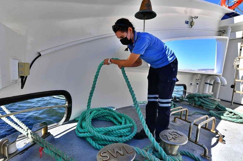 İzmir’de güverteye kadın eli: Halat bağlıyor, dümen tutuyor
