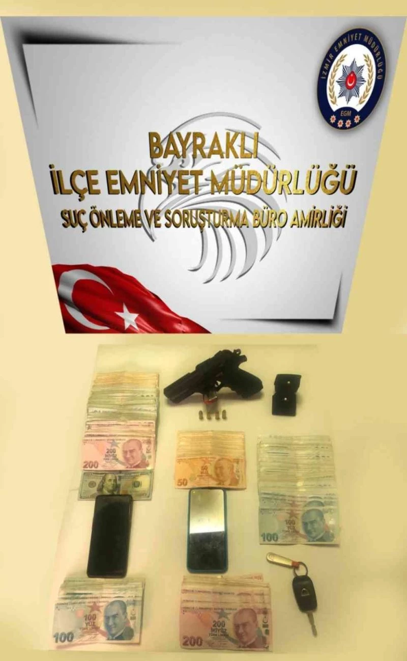 75 bin TL nakit para ve alıcıların cep telefonlarını alan iki şüpheli hızla olay yerinden kaçarak kayıplara karışırken, mağdur olan G.A. ve Ö.C., polise giderek durumu bildirdi. Polis, konuyla ilgili başlatılan soruşturma kapsamında, Ö.C., G.A. ve Ö.K.’nin ifadesine başvurdu. Polis tarafından, çevredeki güvenlik kameraları da incelemeye alınırken, sorgulama sonrası Ö.K.’nin verdiği bilgiler doğrultusunda olayı gerçekleştiren şüphelilerin kimlikleri tespit edildi. Bunun üzerine Bayraklı İlçe Emniyet Müdürlüğü Suç Önleme ve Soruşturma Büro Amirliği ekipleri, U.V. (33) ve A.D. (29) isimli şüphelilerin A.D.’nin Karabağlar ilçesinde ikamet eden sevgilisinin evinde kaldığını belirledi. Zaman kaybetmeden adrese baskın düzenleyen ekiplerce, şüpheliler kıskıvrak yakalandı. Yapılan aramalarda ise 36 bin 885 TL ve 100 dolar ile mağdurlara ait cep telefonları ve olayda kullanılan suç aleti ele geçirildi. Şüpheliler gözaltına alınarak ifadeleri alınmak üzere emniyete götürüldü.