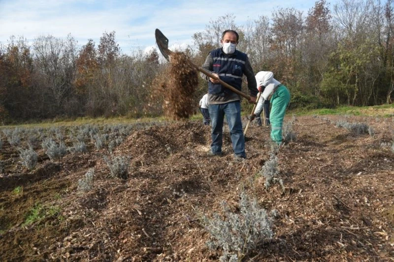 İzmit Belediyesi Sıfır Atık Projesi kapsamında geri dönüştürülerek öğütülen dalları, Lavanta Bahçesi’ndeki yabani otlar ile mücadelede kullanırken, toprağı da daha verimli hale getiriyor.