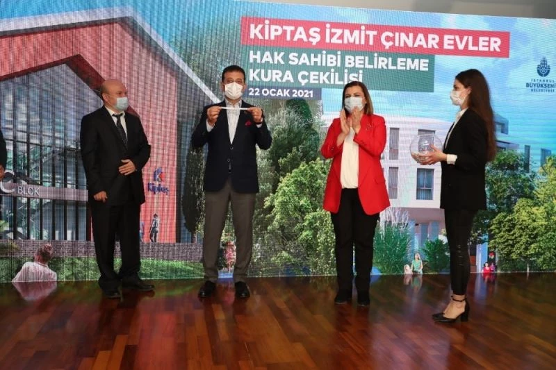 İBB iştiraki Kiptaş ile İzmit Belediyesi ortak projesi olan ve 2 bin 930 başvurunun olduğu İzmit Çınar Evler’in hak sahiplerinin belirlendiği kura çekimi, İstanbul’da gerçekleştirildi. İBB Başkanı Ekrem İmamoğlu ve İzmit Belediye Başkanı Fatma Kaplan Hürriyet’in katılımlarıyla gerçekleşen kura çekimi, noter huzurunda, canlı yayın ile vatandaşlara şeffaf bir şekilde ulaştı. Programda konuşan İzmit Belediye Başkanı Fatma Kaplan Hürriyet, "İzmit Çınar Evler bizim için çok önemli. İzmit’te sosyal konut anlayışının değişmesi, başka bir model ortaya koymak önemli. Sosyal konut denildiğinde; daha yaşanabilir, tasarım gücü yüksek, daha nitelikli olması gerekiyor. İnsanlar o evlerde yaşadığında ‘Evet ben burada huzurluyum, ailemle mutluyum’ diyebileceği bir sosyal konut modeli olmalı. Bunun da; İzmit’te, İBB ve Kiptaş katkılarıyla hayata geçiriliyor olması bizim için de önemli bir adım" dedi.