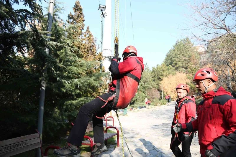 Jandarma Genel Komutanlığı bünyesindeki Jandarma Arama Kurtarma Timleri, Ankara Keçiören’de teleferikte kurtarma tatbikatı düzenledi.