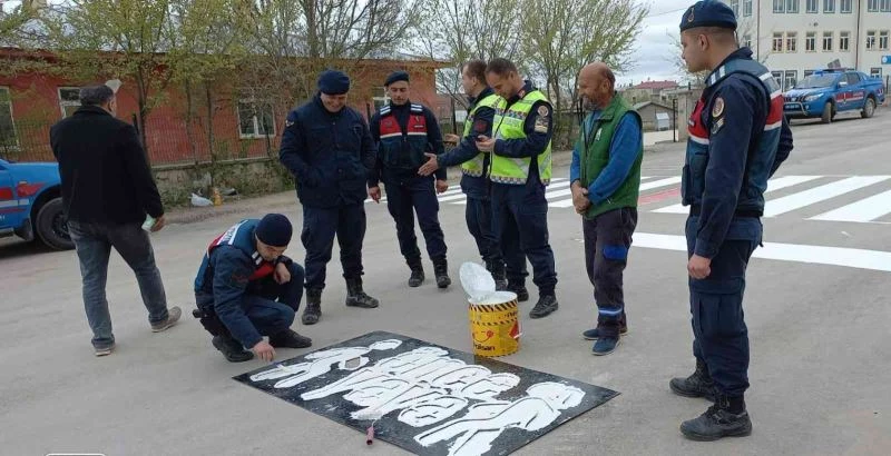 Sivas’ta jandarma ekipleri ve çocuklar okul önünde bulunan ve tehlike arz eden yaya geçidini yeniledi.