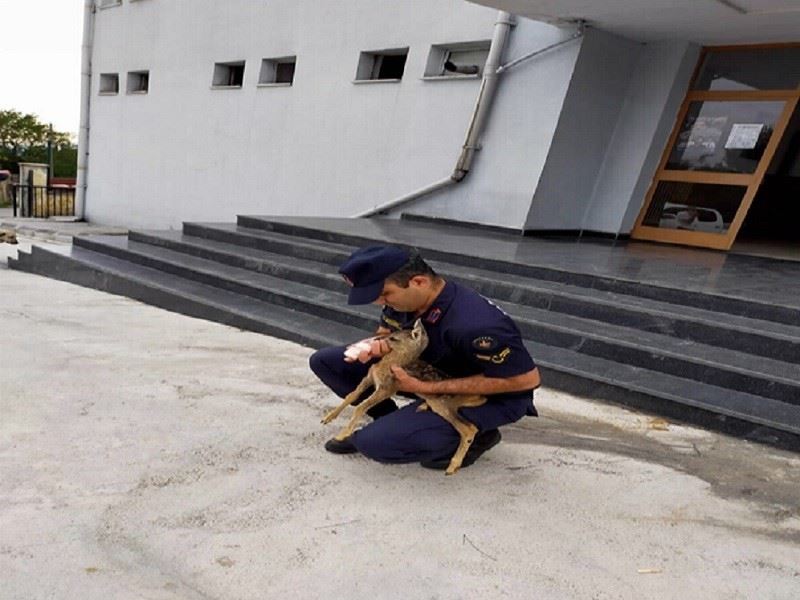 Canik ilçesi Gökçepınar Mahallesi’nde jandarma ekiplerinin devriye faaliyeti sırasında yol kenarında karaca yavrusu bulundu. Gökçepınar Jandarma Karakol Komutanlığı ekiplerince bulunan karacaya biberonla süt içirilerek karnı doyuruldu.