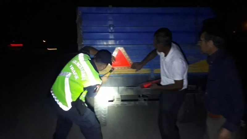 Ekipler, ayrıca aydınlatıcı uyarı levhası eksik olan römorklara da reflektör çakarak, sürücülerin güvenli şekilde yola devam etmelerini sağlıyor.