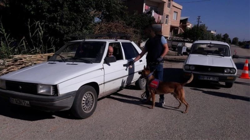 Uygulamada Adana İl Jandarma Komutanlığı ekipleri eğitimli narkotik köpeklerle araç kontrolünde denetimlere katıldı.