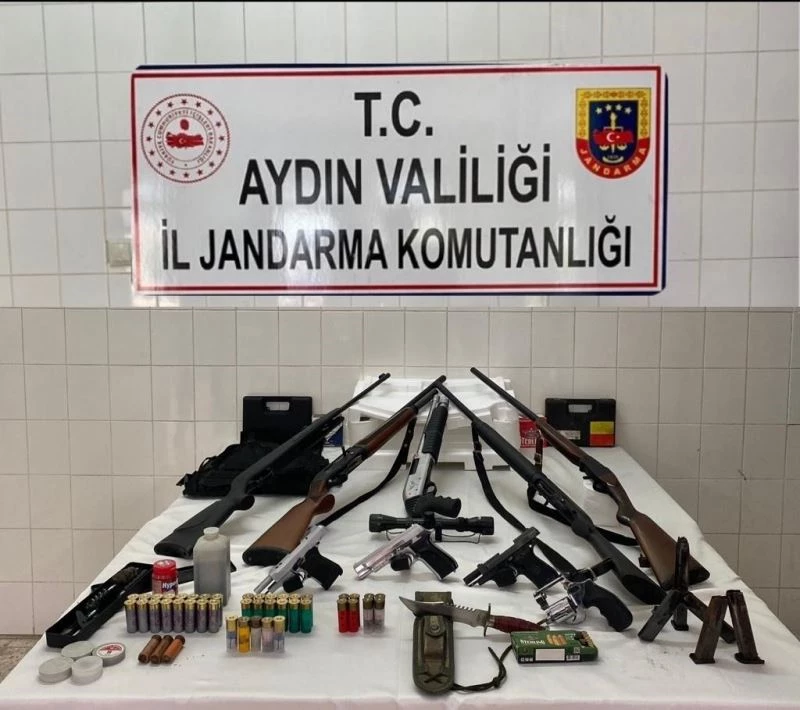 Aydın İl Jandarma Komutanlığı, Kaçakçılık ve Organize Suçlarla Mücadele Şube Müdürlüğü ekiplerince silah kaçakçısına yönelik yürütülen çalışmalar aralıksız devam ediyor. Edinilen bilgiye göre, Germencik ilçesinde jandarma, silah kaçakçılığı yaptığı tespit edilen 1 şahsa yönelik operasyon gerçekleştirdi. Yapılan operasyonda şüpheli şahıs yakalanarak gözaltına alınırken, aramada 4 adet faturasız kurusıkı tabanca, 4 adet ruhsatsız otomatik av tüfeği, 1 adet pompalı ruhsatsız av tüfeği, 400 gram barut ile çeşitli malzemeler ele geçirildi. Yakalanarak gözaltına alınan şüpheli hakkında adli işlem başlatıldı.