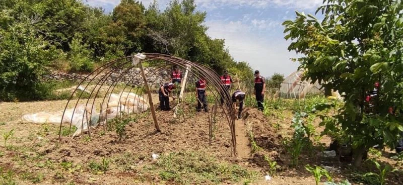Serasi ve her gün özenle suladigi sebze fideleri sökülen Yilmaz, jandarma ekiplerinden yardim istedi. Bunun üzerine Akseki Jandarmadan Komutanliginda görevli ekipler, kazma ve küreklerle saatlerce çalisarak gazinin sera ve bahçesini eski haline getirdi.