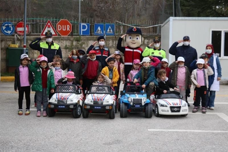 Eğitimlerin devamında çocuklara, trafik araçlarında ve trafik denetimlerinde kullanılan siren ve telsizler hakkında bilgiler verildi. Ayrıca çocuklar, Jandarma Asayiş Komando Bölük Komutanlığı’na ait zırhlı aracını ve komando birliklerini, Çevre, Doğa ve Hayvanları Koruma birimine ait aracı yakından görme fırsatı buldu.