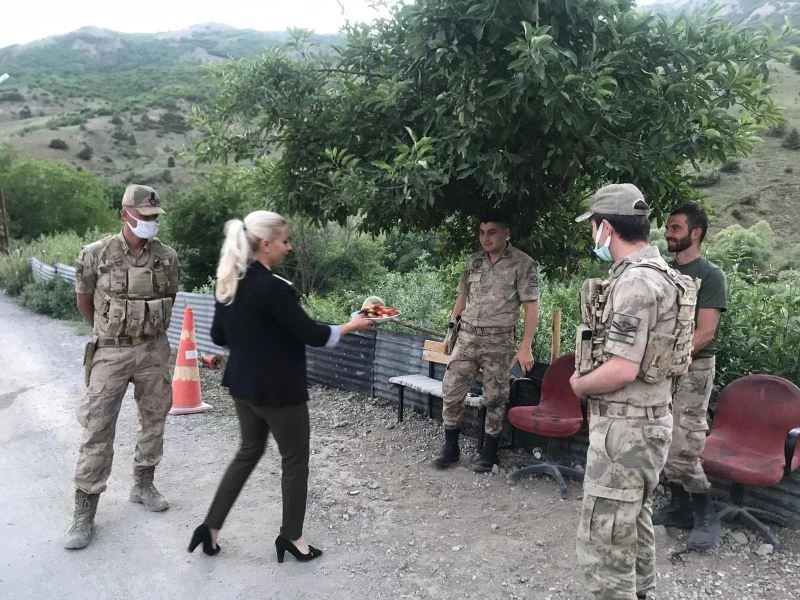 Tunceli’nin Pülümür ilçesinde köy sakinleri ile AK Partili kadınlar, uygulama noktasında jandarmayı ziyaret ederek topladıkları organik meyvelerden ikram etti.