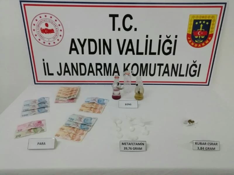 Edinilen bilgiye göre, Söke İlçe Jandarma Komutanlığı JASAT timi devriye görevi sırasında şüphelendiği A.T. isimli şahsı durdurdu. Şahıs üzerinde yapılan aramada 39,79 gram metamfetamin, 3,84 gram kubar esrar, 3 adet uyuşturucu içiminde kullanılan aparat ve 1010 TL nakit para ele geçirildi. Gözaltına alınan şahıs işlemlerinin ardından adliyeye sevk edildi.