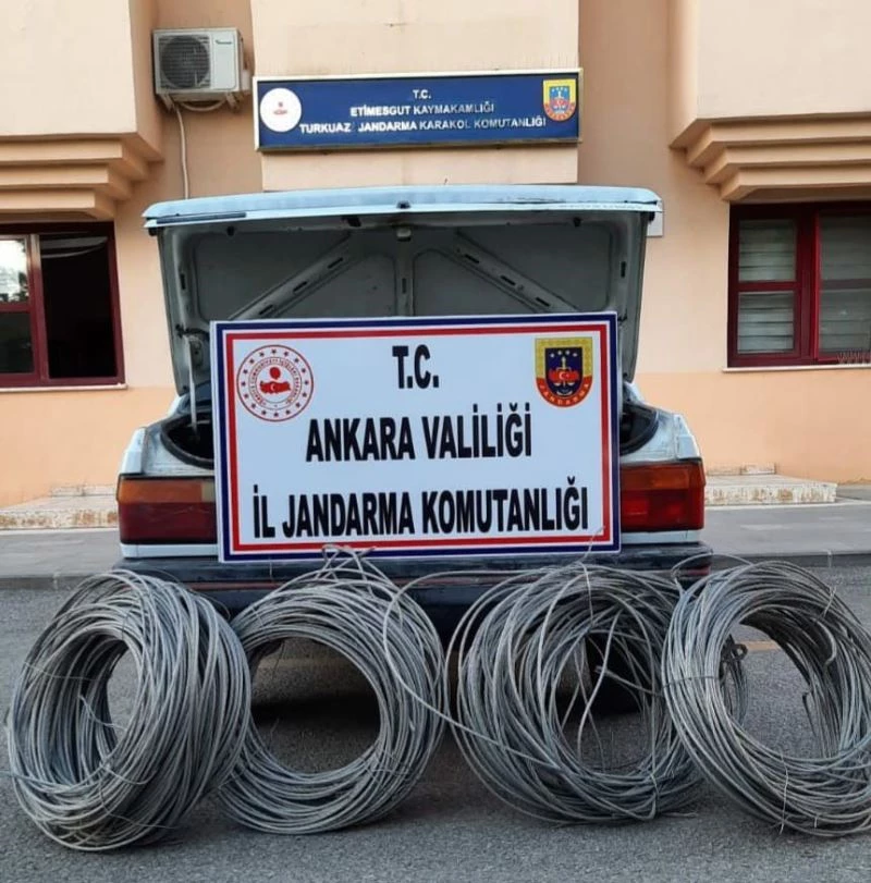 Ankara İl Jandarma Komutanlığına bağlı ekipler, Etimesgut ilçesinin Ballıkuyumcu Mahallesi’ndeki devriyesinde yol kenarında bulunan elektrik kablolarının kesildiğini gördü. Ekipler, yaptıkları fiziki ve teknik çalışmalar neticesinde kabloları çalan kişinin Ç.M. olduğunu belirledi. Ç.M.’nin çaldığı kabloları aracına yüklediği gören ekipler, zanlıyı suçüstü yaparak yakaladı. Kabloların 450 metre uzunluğunda olduğu ve sondaj hattında kullanıldığı tespit edildi. Kablolar sahiplerine teslim edilirken, Ç.M. hakkında adli işlem başlatıldı.