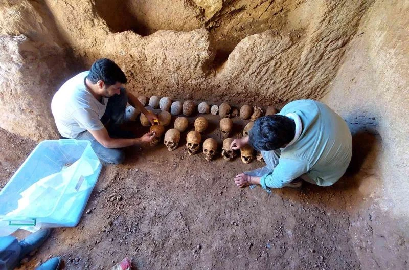 Adıyaman’da defineciler tarafından kaçak kazı yapılan Roma Dönemi’ne ait yaklaşık 10 metrekarelik bir mezar odasından 27 adet iskelet çıktı.