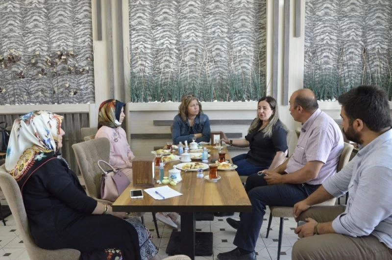 Aile Çalışma ve Sosyal Hizmetler İl Müdür Yardımcısı Harun Akpınar ve Şiddet Önleme ve İzleme Merkezi Müdürü Şükran Gökdaş, kooperatif tarafından kurulan kafeyi ziyaret ederek, çalışmalar hakkında bilgi aldılar.