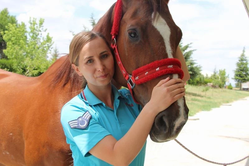 Kadın astsubaylar atları anne şefkati ile eğitiyor