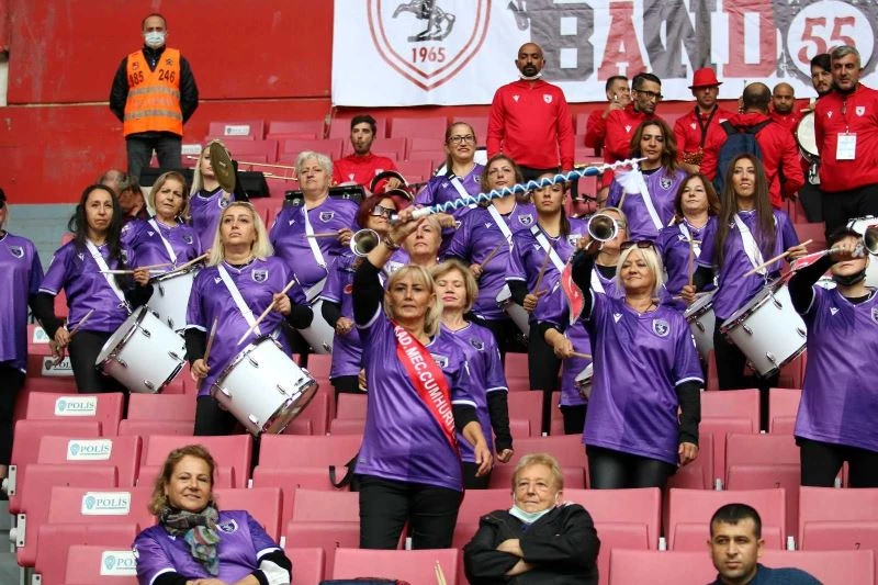 SAMSUN – 32 kadından oluşan bando takımı, ilk gösterisini Samsunspor – Ümraniyespor maçında tribünde yaptı.