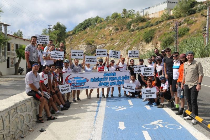 Adana Bisiklet Topluluğu Spor Kulübü, Hatay’da bulunan Türkiye’nin en uzun bisiklet yolunda ‘kadın cinayetleri ve bisikletli ölümler son bulsun’ diye pedal çevirdi.