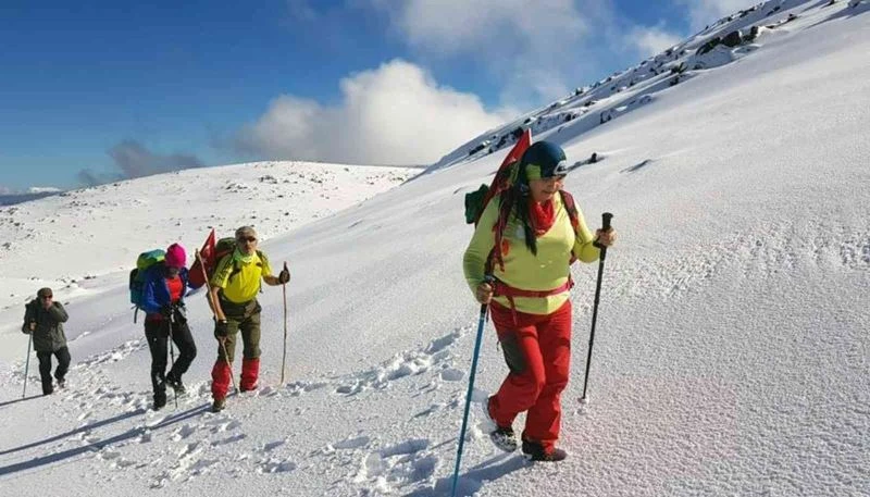 ‘81 ilde 81 Zirve Anadolu Parsı’ projesi kapsamında 47’nci tırmanışını gerçekleştiren kadın dağcı Melek Kıyı Aydın, Coşkun Aktaş ve Fikret İrez rehberliğinde ayrıca Nursel Ölmez ve Ramazan Ferek refakatinde Sandras Çiçek Baba zirvesine tırmanış yaptı.