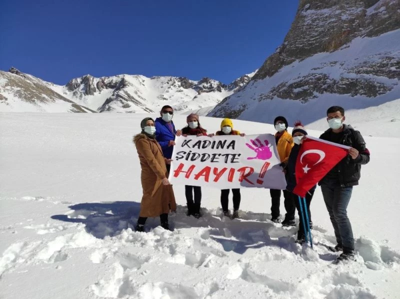 Niğde’de kadın dağcılar Bolkar dağlarında “Kadına Şiddete Hayır” pankartı açtı.