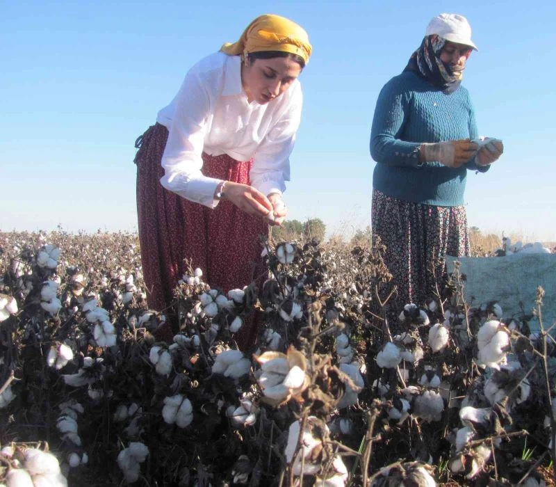 Gaziantep’in Araban Kaymakamı Hilal Kızılkaya, şalvar giyerek geldiği pamuk tarlasında kadın işçilerle birlikte hasat yaptı.