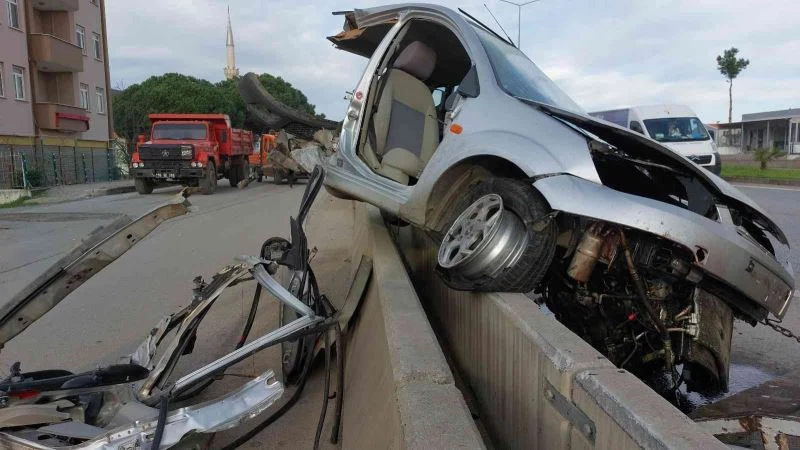 Samsun’da yoldan çıkan otomobilin karşı şeride geçerek başka bir otomobil ile çarpışması sonucu meydana gelen kazada paramparça olan otomobilin kadın sürücüsü kazayı yaralı olarak atlattı.