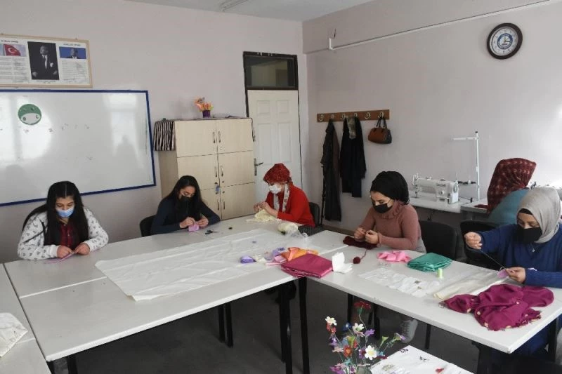 Şahinbey Belediyesi’ne bağlı Mimar Sinan Gençlik Merkezi’nde verilen el sanatları giyim ve iğne oyası kurslarına gelen kadınlar aldıkları eğitim ile aile bütçelerine de katkıda bulunuyorlar. Düzenlenen kurslarda maske, mesafe ve hijyen kurallarına hassasiyetle dikkat ediliyor.