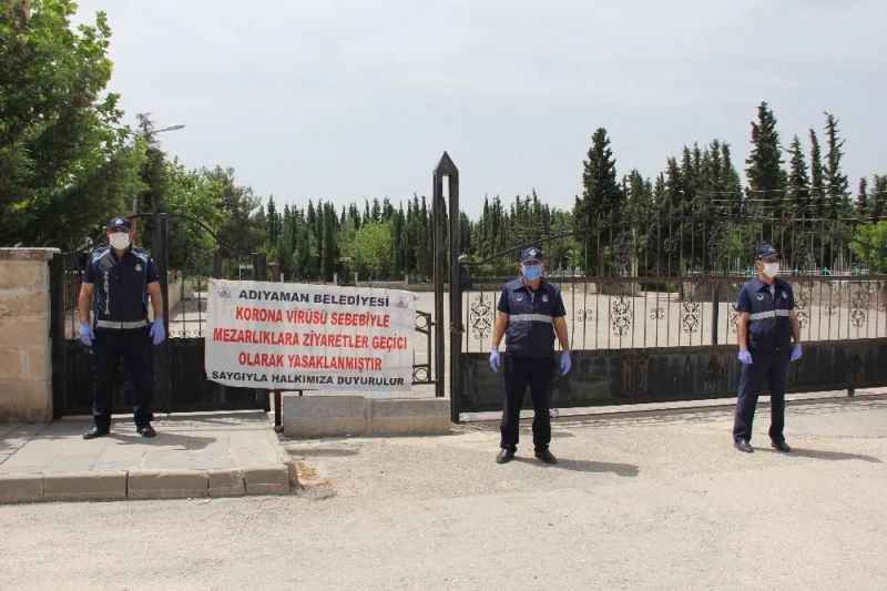 Adıyaman İl Hıfzıssıhha Kurulu, korona virüs (Covid-19) tedbirleri kapsamında mezarlık ziyaretini yasakladı. Kadir Gecesi ve Ramazan Bayramı süresince mezarlıklar ziyaret edilemeyecek. Mezarlık girişine yasak ile ilgili afiş asılırken, zabıta ekipleri mezarlık girişinde bekliyor.