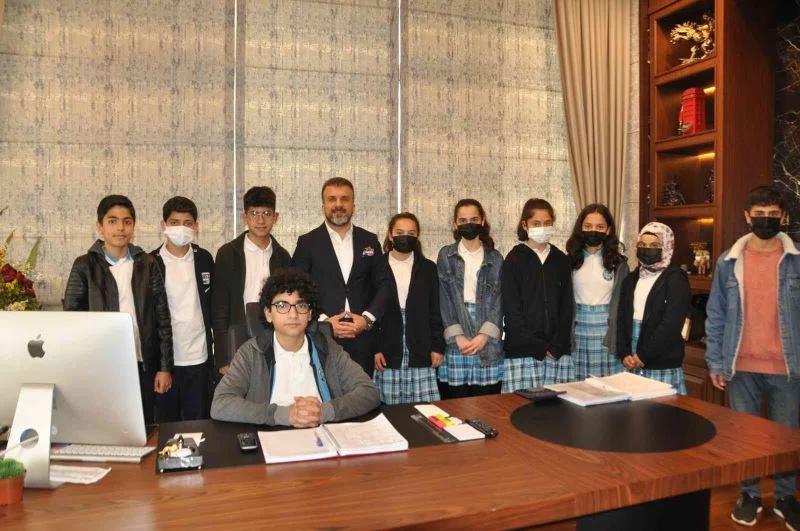 Hacı Kemal Kadooğlu Ortaokulu idareci ve öğrencileri Kadooğlu Holding’i ziyaret ederek Kadooğlu Holding Başkan Yardımcısı Celal Kadooğlu’ndan bilgiler aldı. Hacı Kemal Kadooğlu Ortaokulu Müdürü Ekrem Kavak ve beraberindeki idareci ve öğrencilere Kadooğlu Holding bünyesinde faaliyet gösteren şirketler hakkında bilgiler veren Celal Kadooğlu öğrencilere başarının sırlarını da anlattı. Kadooğlu etkinlik çerçevesindekoltuğunu okul öğrencilerinden Abdurrahman Kamer’e devretti.