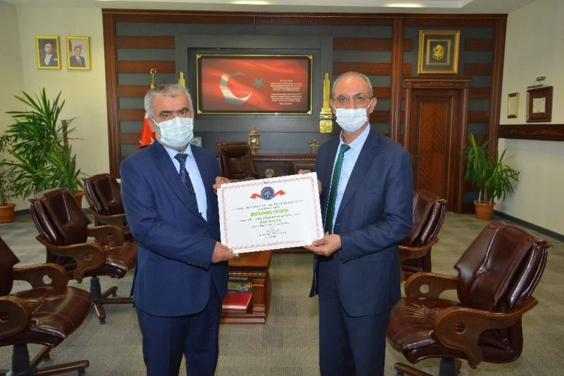 Rektör Prof. Dr. Vatan Karakaya, rektörlük makamında turuncu ve yeşil bayrak ödülünü almaya hak kazanan Çiçekdağı, Kaman, Mucur ve Teknik Bilimler Meslek Yüksekokulları yöneticileri ile bir araya gelerek onlara belgelerini verdi.