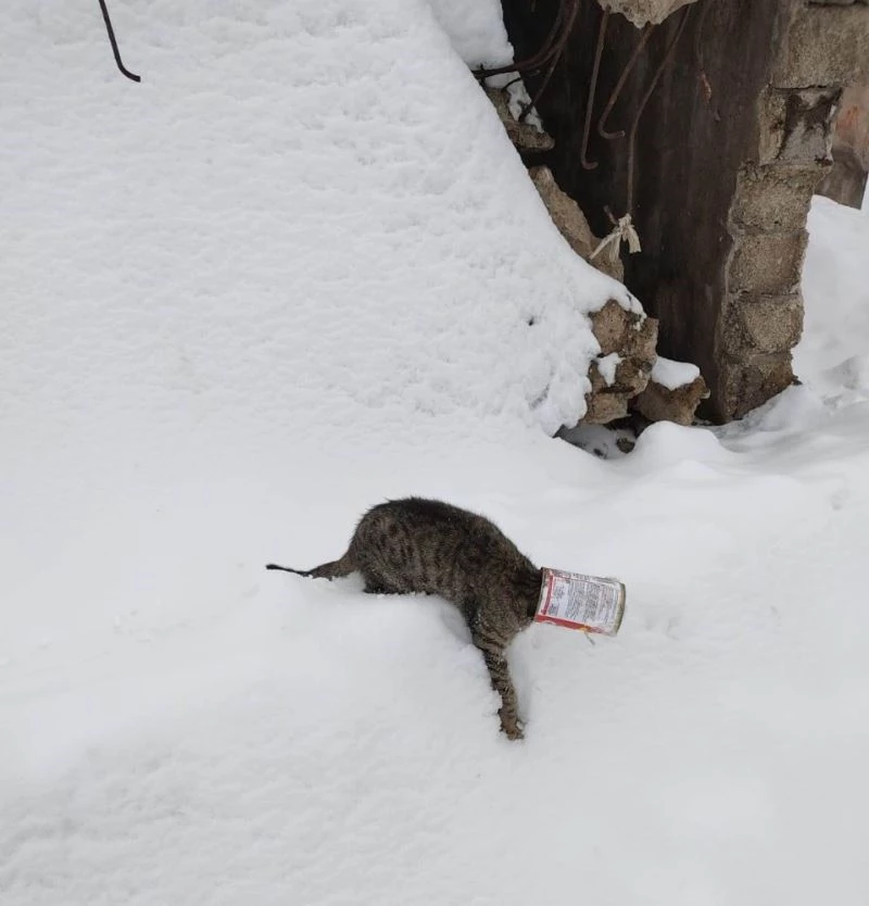 Bitlis’in Tatvan ilçesinde kafası kutuya sıkılan kedinin imdadına okul müdürü yetişti.