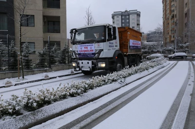 İstanbul’da son yılların en yoğun kar yağışı beklenirken, Kağıthane Belediyesi ekipleri kar yağışının başlamasıyla sabahın erken saatlerinde sahaya indi.