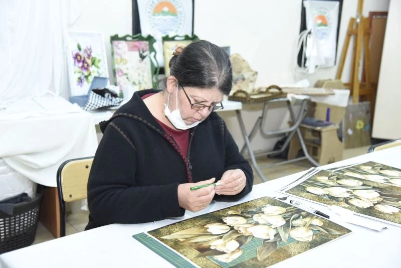 Sağlık Mahallesi’ndeki Adnan Kahveci Parkı’nın içerisinde bulunan kurs merkezinde, kağıt rölyef ve ahşap boyama kurslarına katılan özellikle ev hanımları, hem günün stresini atıyor hem de el becerilerini geliştiriyor. Pandemi şartlarının göz önüne alınarak verilen kurslardan oldukça memnuniyet duyduklarını belirten kursiyerler, bu kursları açtığı için Toroslar Belediye Başkanı Atsız Afşın Yılmaz’a teşekkür etti.