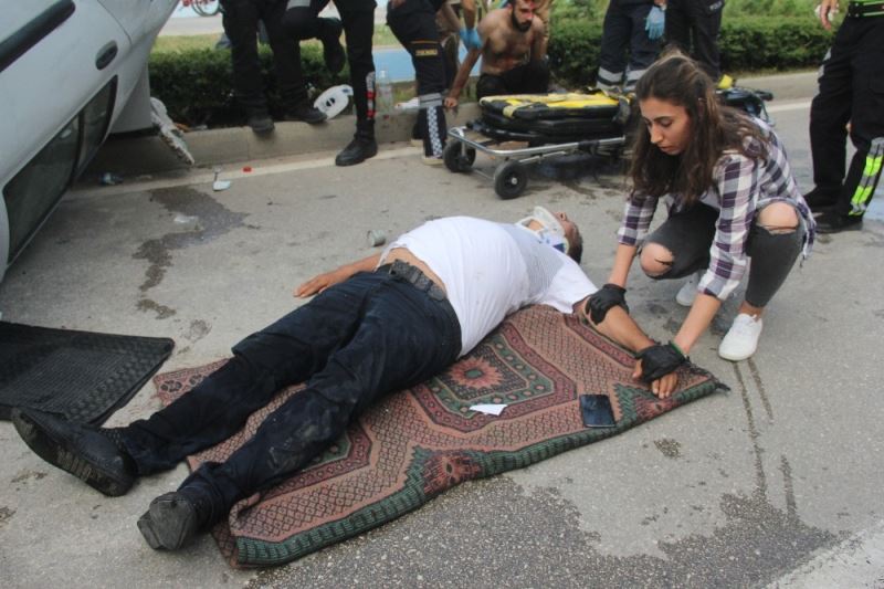 Adana’da yoldan geçerken iki kişinin yaralandığı kazayı görüp müdahale eden hemşire, sağlık ekipleri gelene kadar yaralıların başından ayrılmadı.