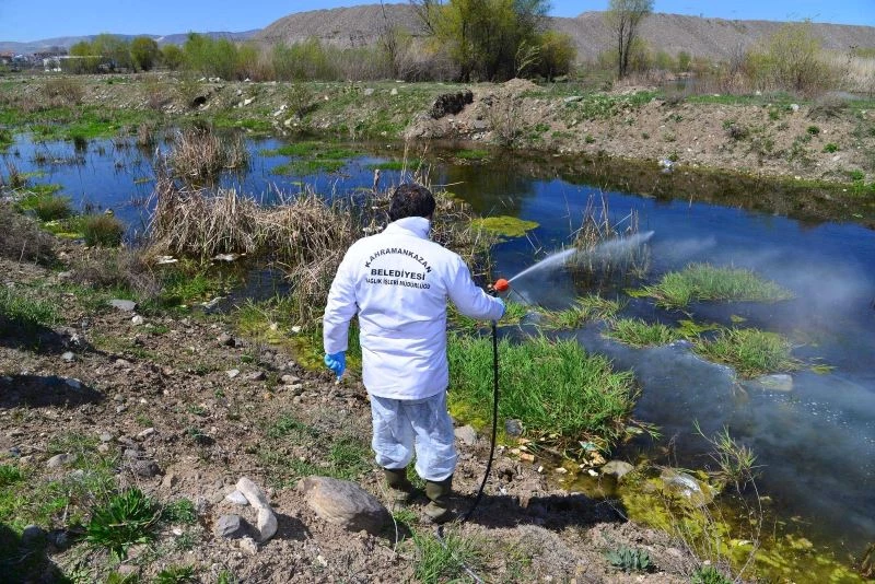 Kahramankazan Belediyesi ekiplerince, haşere ve koku oluşumunun önüne geçmek için Şubat ayında başlatılan çalışma kapsamında ilçe genelindeki çay, dere ve su birikintisi gibi larva ve kötü koku oluşumunun yaşandığı alanlar ilaçlanıyor.