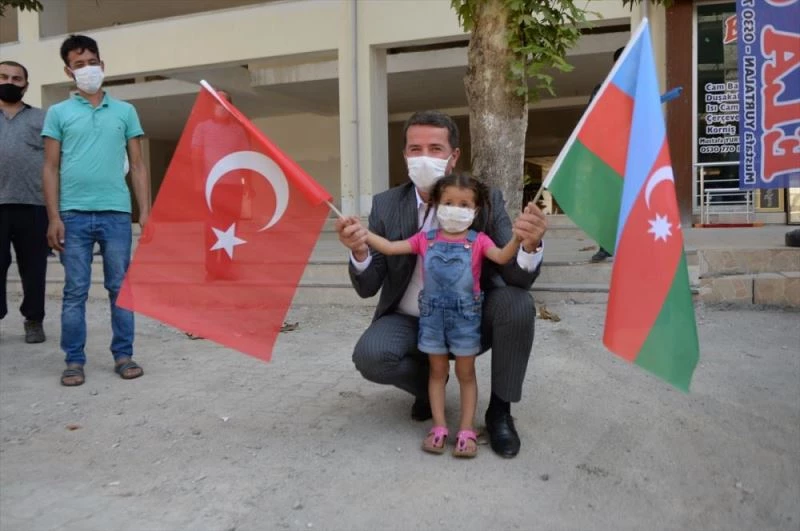 KAHRAMANMARAS (AA) - Kahramanmaras'in Türkoglu ile Sanliurfa'nin Akçakale ilçelerinde, vatandaslara Azerbaycan'a destek amaciyla vatandaslara Türk ve Azerbaycan bayraklari dagitildi.