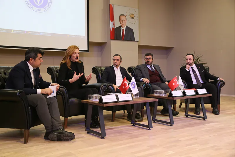 Konuşmanın ardından, KİÜ Kurumsal İletişim Koordinatörü Dr. Yusuf Taş'ın moderatörlüğünde gerçekleştirilen panele, TRT Haber Koordinatörü Hüseyin Erdoğan, Haber Global Ankara Temsilcisi Hasan Ulyaş, A Haber Moderatörü Merve Türkay ve Cumhurbaşkanlığı İletişim Başkanlığından Uzman Mert Ödeş konuşmacı olarak katıldı.