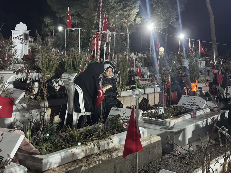 Gecenin karanlığına rağmen Kahramanmaraş Kapıçam Şehir Mezarlığı'na giden vatandaşlar yakınlarının kabirlerini sulayıp çiçek bıraktı.