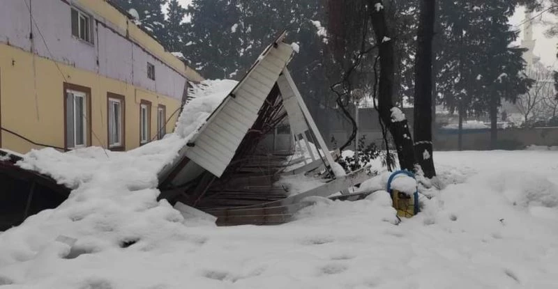 Kahramanmaraş’ın Türkoğlu ilçesinde yoğun kar yağışı nedeniyle bazı binaların çatıları çöktü.
