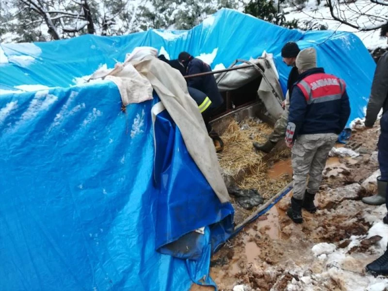 Öte yandan Beyoğlu Mahallesi'nde İsmail Çakmak'a ait ahırın çatısı da kar nedeniyle çöktü. Bölgeye sevk edilen jandarma ve itfaiyenin bir saatlik çalışmasının ardından, ahırda mahsur kalan 3 büyükbaş hayvan kurtarılarak sahibine teslim edildi.