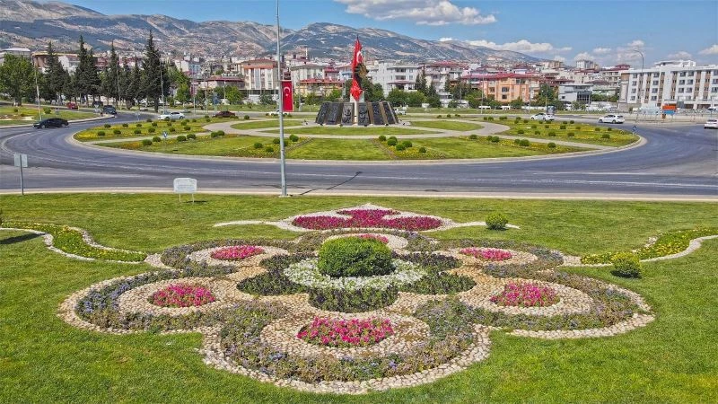 Kahramanmaraş’ta şehir merkezinde yer alan kavşaklar çiçeklerle renklendi.