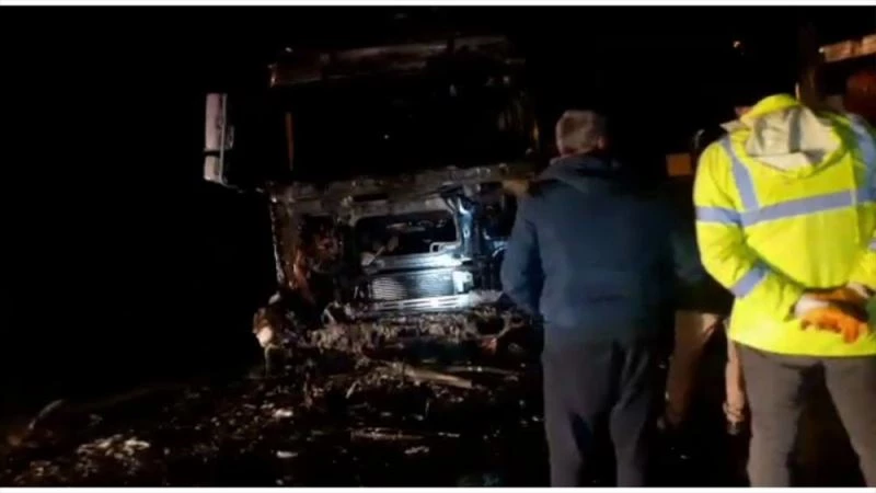 Yangın nedeniyle tır kullanılamaz hale geldi.