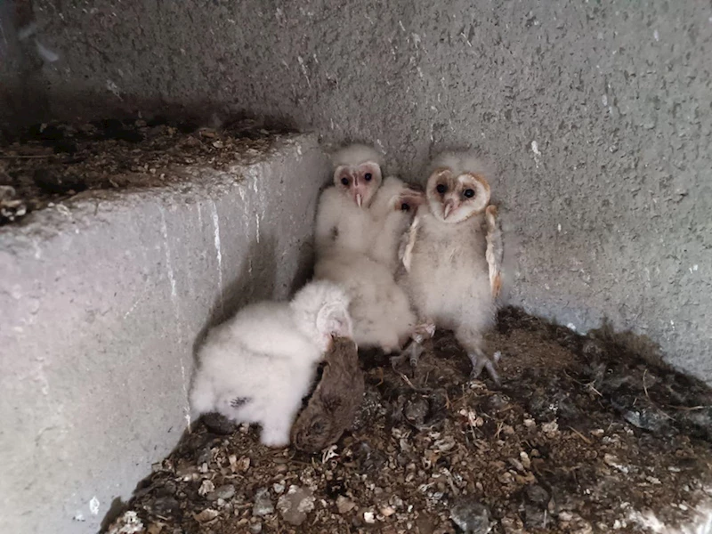 Güzelyurt Camisi'nin minaresine yuva yapan peçeli baykuşun yavrusu bulunduğu yerden düştü.